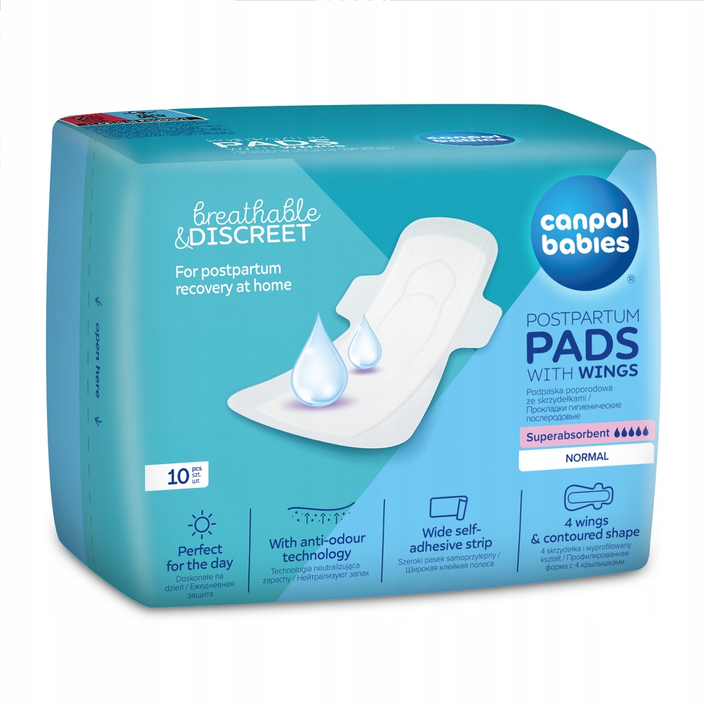 Superchłonne podpaski poporodowe Canpol babies są idealnym rozwiązaniem dla kobiet w czasie połogu do użytkowania w domu po wyjściu ze szpitala. Podpaski poporodowe są cieńsze i dyskretniejsze niż podkłady poporodowe, ale również bardzo chłonne i oddychające. Zwykłe podpaski nie sprawdzają się w tej sytuacji.