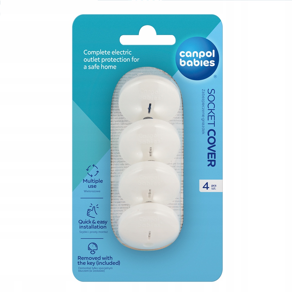 Praktyczne zabezpieczenie, które blokuje dziecku dostęp do gniazdek elektrycznych i skutecznie chroni je przed porażeniem prądem. Przystosowane są do gniazd standardowych i z bolcem. Można je w wygodny i szybki sposób założyć oraz zdjąć przy użyciu klucza, który znajduje się w opakowaniu. Produkt do wielokrotnego użytku.