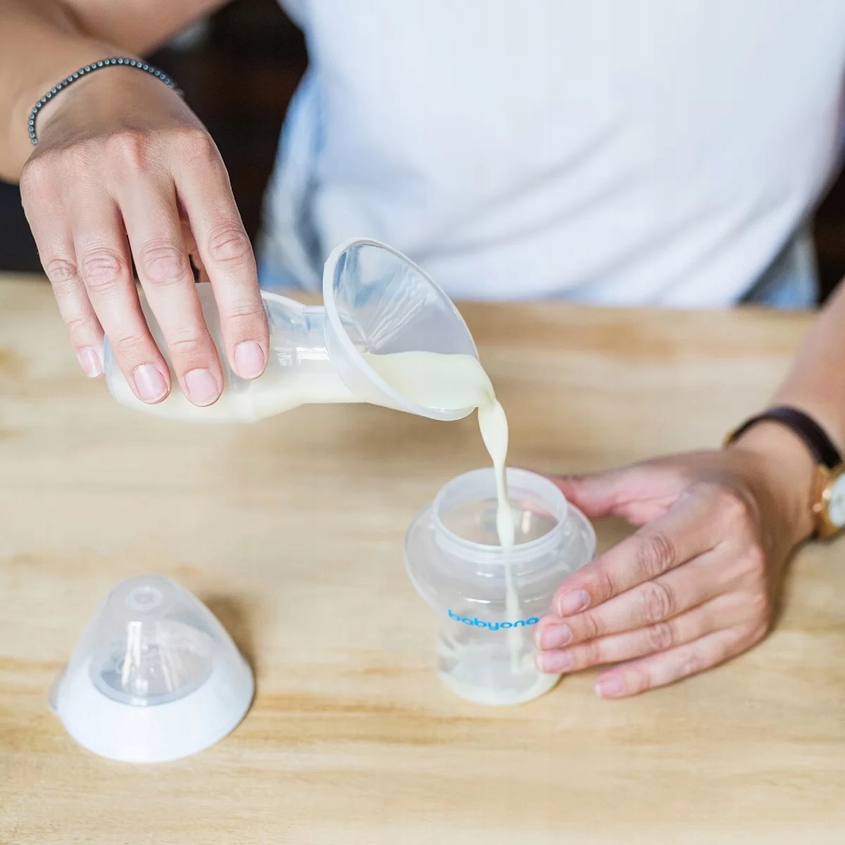 - zbiera mleko z drugiej piersi w czasie karmienia lub używania laktatora