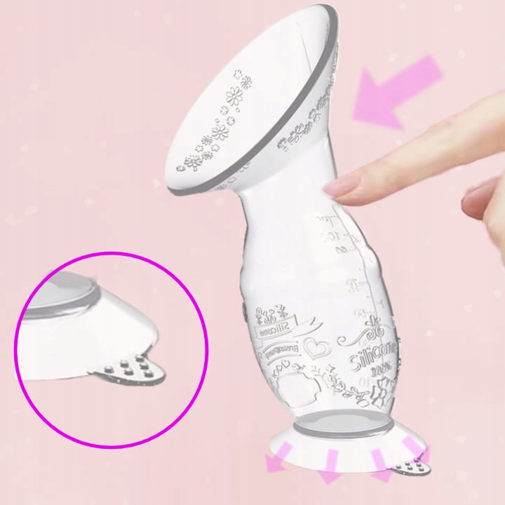 Zbiera wypływający pokarm podczas karmienia z 2 piersi | Ręczny laktator | Reguluje i wspiera laktację | Bezpieczny |100% silikonowy | Brak ryzyka stłuczenia i uszkodzenia | Wyprofilowany kształt lejka | Łatwy w użyciu | Można myć w zmywarce