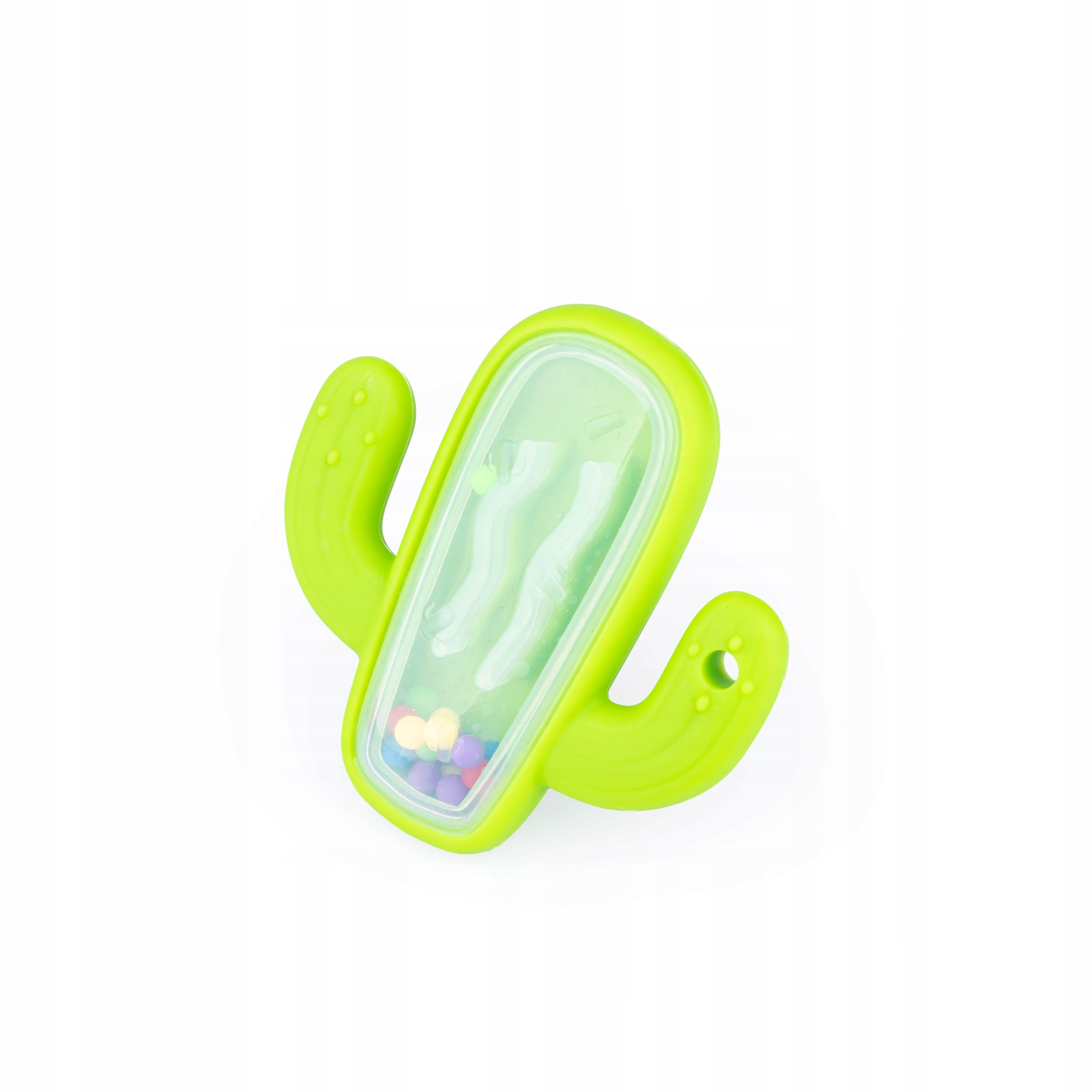 We wnętrzu kaktusa kryje się mnóstwo kolorowych, grzechoczących kuleczek, a jego ramiona zdobią wypustki, które przyniosą ulgę ząbkującemu maluchowi. Kształt zabawki jest idealnie dopasowany do małych rączek, co ułatwia najmłodszym chwytanie grzechotki.