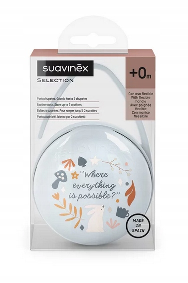 Składa się z dwóch oddzielnych części, które można rozdzielić, by przechowywać dwa smoczki w oddzielnych etui. Dzięki elastycznemu uchwytowi, etui można łatwo zawiesić na wózku, torbie lub łóżeczku, co sprawia, że smoczek jest zawsze pod ręką, gotowy do użycia, kiedy tylko jest potrzebny. Jest idealnym rozwiązaniem na spacerach i w podróży.