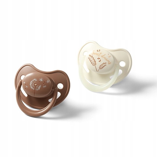 W zestawie znajdziesz dwa smoczki uspokajające anatomiczne dla dzieci powyżej 18. miesiąca. Jeden na dzień, a drugi ze świecącym uchwytem na noc- duet idealny.