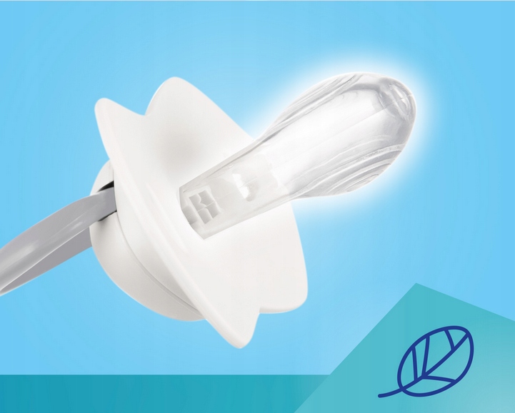 Wyjątkowo miękka gumka wymaga mniej wysiłku podczas ssania – ułatwia akceptację smoczka przez dziecko.​