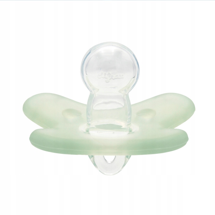 Wykonany w całości z jednego kawałka elastycznego silikonu, który jest bardzo wytrzymały, nie odkształca się, nie wysycha i nie odbarwia. Smoczek jest przyjemny dla skóry, dzięki jedwabiście miękkiej silikonowej powłoce.