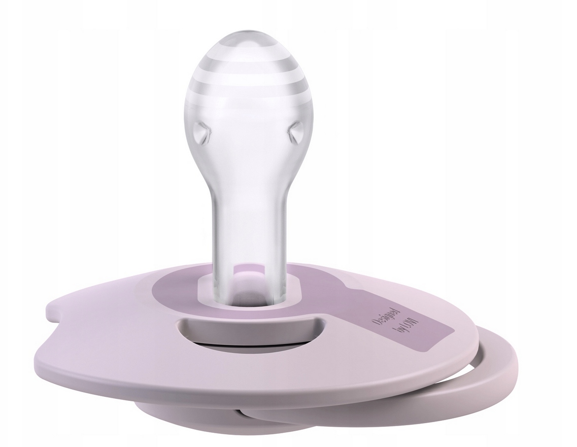 – spłaszczona gumka i cienka szyjka smoczka, umożliwiają dziecku swobodne domknięcie i odpowiednią pracę dziąseł podczas ssania.