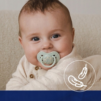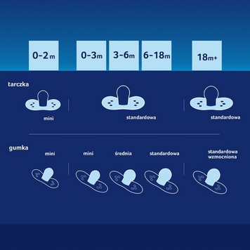 – rozmiary gumki i tarczki smoczka zostały dopasowane do wieku i etapu rozwoju dziecka.