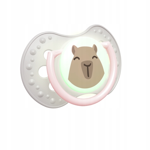 Jeden ze smoczków w zestawie posiada uchwyt, a drugi kapsel świecący w ciemności, co ułatwia znalezienie smoczka w nocy.