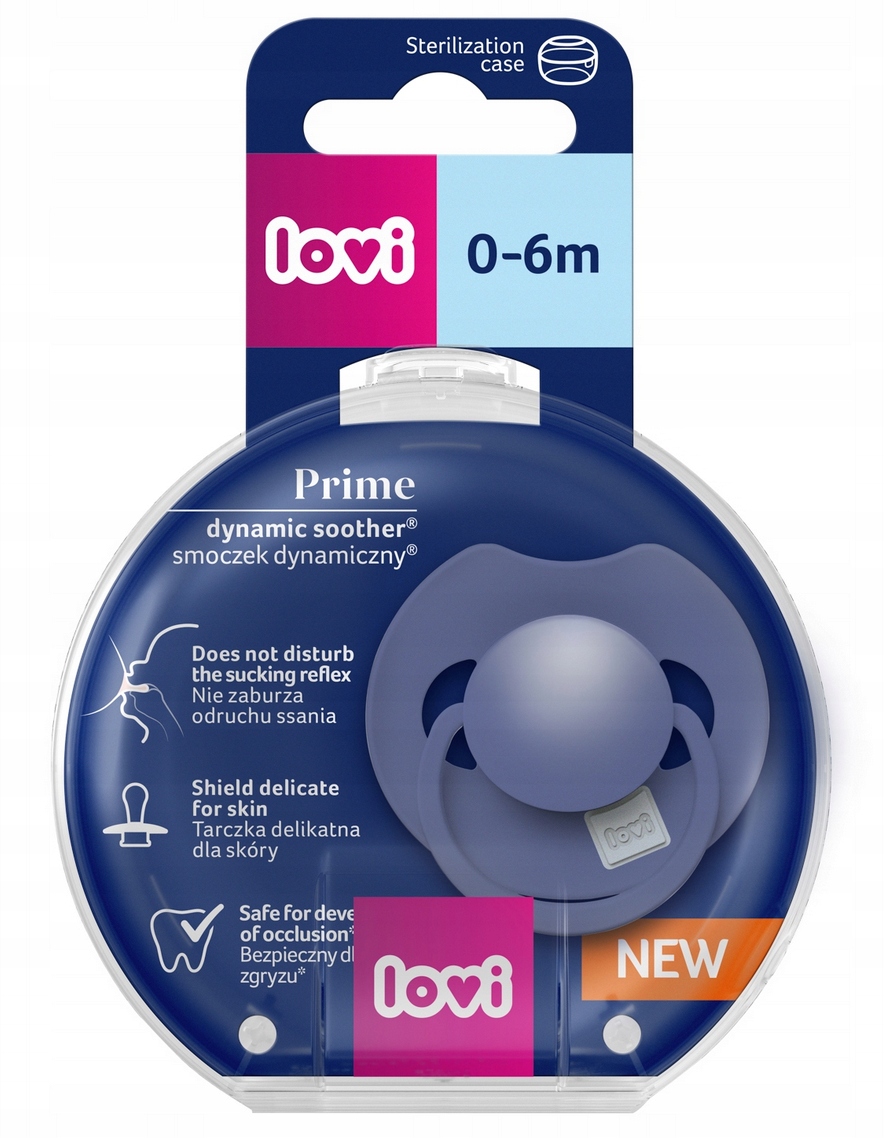 – rozmiar gumki smoczka Prime został dopasowany do wieku i etapu rozwoju dziecka, jednak różni się nieco od gumek w smoczkach standardowych LOVI
