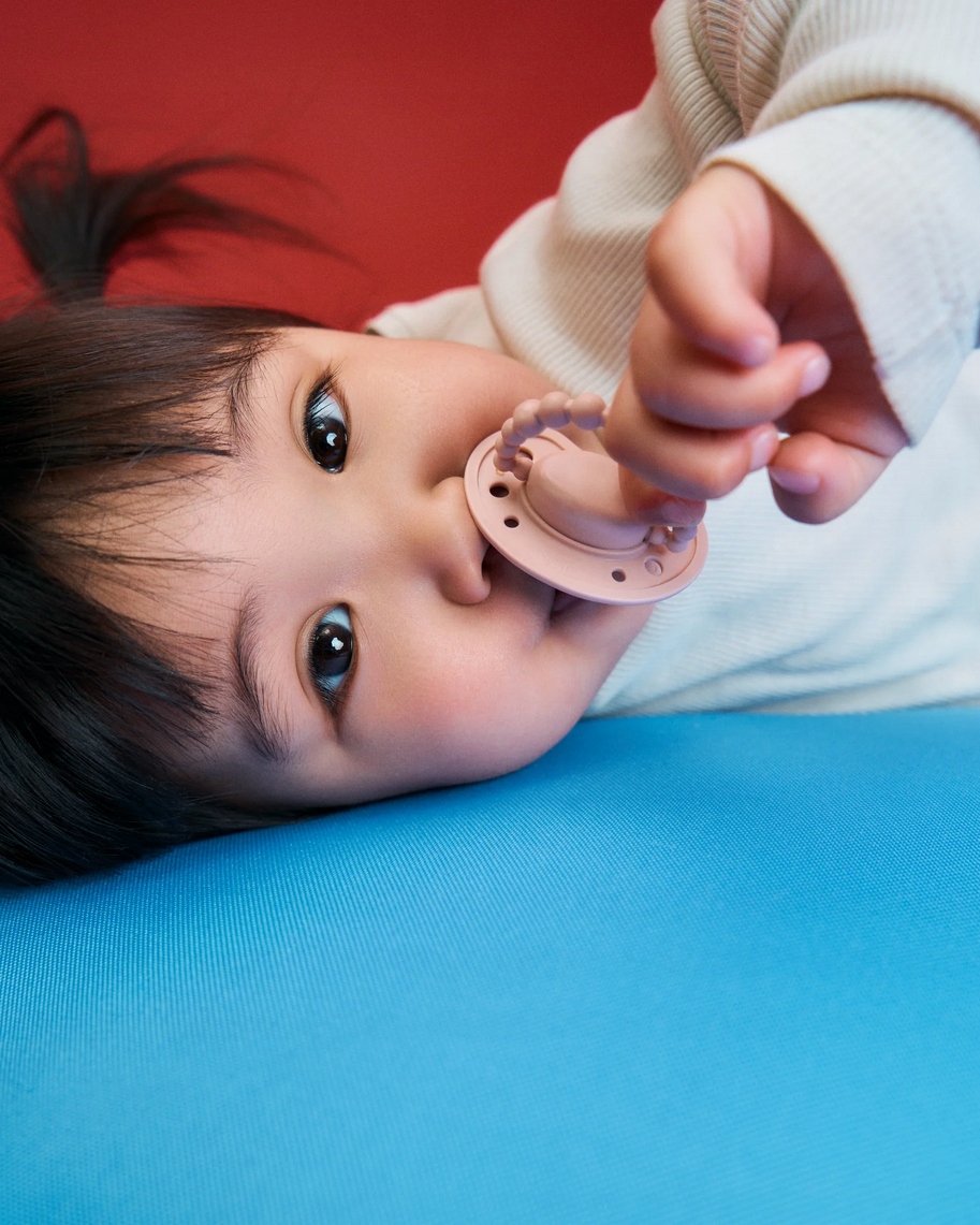 Smoczek – wykonany z bezpiecznego dla niemowląt silikonu medycznego.
