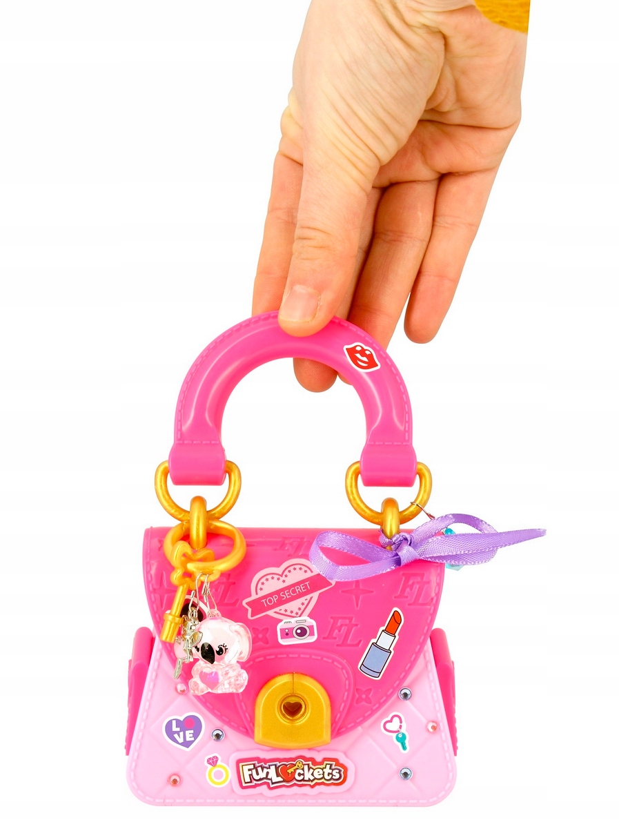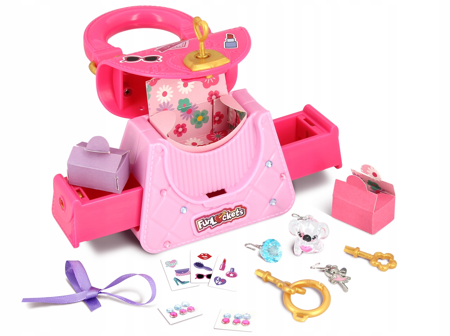 Torebusia wyposażona jest w wiele skrytek oraz kluczyki, które pozwolą zamknąć wszystkie skarby, aby zachować je w tajemnicy. W zestawie znajdują się akcesoria do spersonalizowania torebki, takie jak kolorowe naklejki czy zawieszki do ozdoby. Zabierz torebkę ze sobą, aby mieć przydatne drobiazgi zawsze pod ręką!