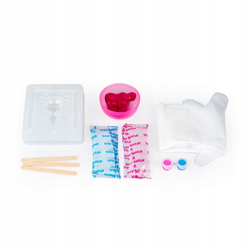 Zamieszaj klejami, dodaj trochę koloru, a z tak przygotowanej barwnej mikstury stwórz „gumowego” zwierzaka do zabawy i ugniatania! Kreatywny zestaw zawiera wszystko, czego potrzeba, aby wykonać własną figurkę squishy. Przygotuj foremkę zgodnie z dołączoną instrukcją, a następnie zalej ją klejącą, barwną mieszanką. Aby squishy zwierzak wyglądał jak najlepiej, pozwól mu porządnie wyschnąć, pozostawiając go w foremce najlepiej na całą dobę. Po tym czasie wyjmij squishy z foremki i ciesz się nowym koleżką do zabawy!