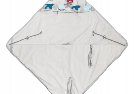 Otulacz posiada kapturek z uroczymi uszkami, który jest regulowany ściągaczem. Wypełniony jest antyalergicznym wkładem. Wewnątrz znajduje się delikatna tkanina velvet.