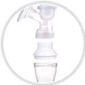 W komplecie z laktatorami elektrycznymi EasyStart oraz manualnym EasyStart znajduje się adaptor, który pasuje do pojemników, dzięki niemu istnieje możliwość odciągania pokarmu bezpośrednio do pojemników.