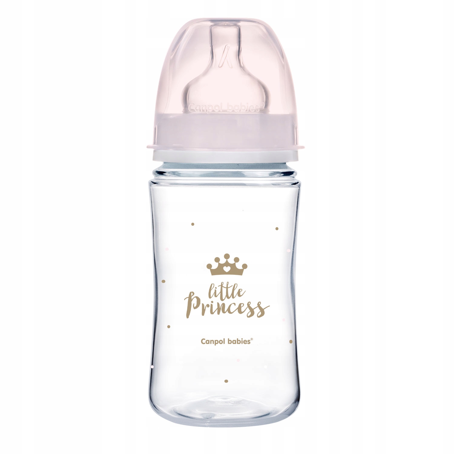 Butelka Royal Baby jest lekka, wykonana została z bezpiecznego, wolnego od BPA materiału. Czytelna i precyzyjna skala, umożliwia szybkie przygotowanie pokarmu, a szeroki otwór ułatwia utrzymanie higieny butelki i smoczka. Butelka jest kompatybilna z laktatorami Canpol babies, dzięki temu odciągnięty pokarm możesz od razu podać maluszkowi. Pojemność 240ml.