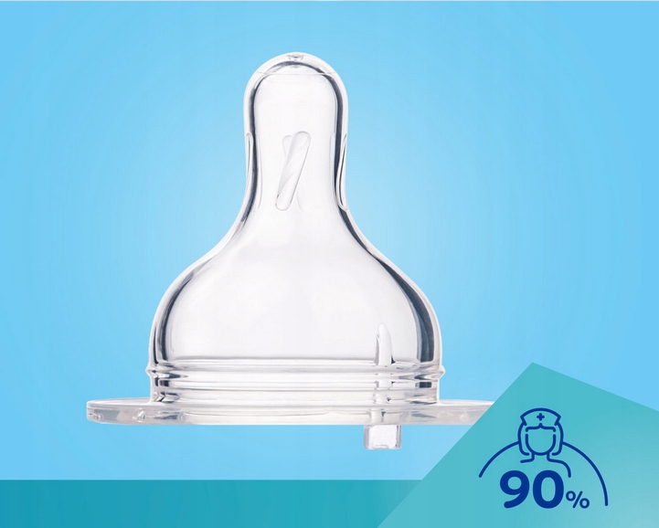 Kształt smoczka przypomina pierś mamy – ułatwia łączenie karmienia piersią i butelką.