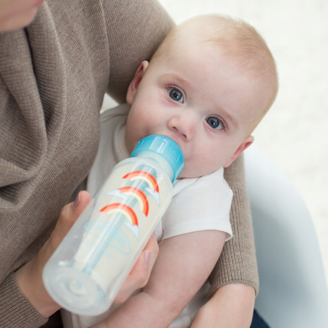 Zestaw ułatwia przejście ze smoczka w butelce, do ustnika kubka. Butelka wyposażona jest w smoczek poziom 3 oraz dodatkowo w miękki, silikonowy ustnik niekapek. Gdy dziecko będzie gotowe, usuń wewnętrzny system odpowietrzający w butelce i zastąp smoczek ustnikiem, który przygotuje dziecko do picia z kubka.