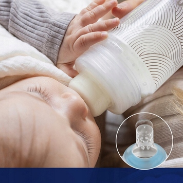 Butelka do podawania odciągniętego mleka mamy. Bezpieczna dla dziecka karmionego piersią, gdyż nie zaburza odruchu ssania i nie koliduje z karmieniem naturalnym. Wyposażona w profesjonalny smoczek dynamiczny® zbudowany z niejednorodnych warstw silikonu (cienka, dynamiczna, wydłużająca się końcówka i twarda, profilowana podstawa). Dzięki temu wymaga od dziecka aktywnego ssania: silnej pracy mięśni warg i języka.
