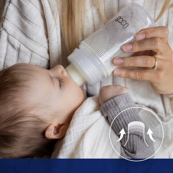 – ułatwia prawidłowe trzymanie butelki i podanie pokarmu w bezpiecznej pozycji.
