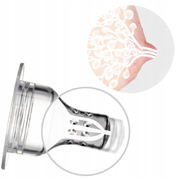 Zbudowana jest z niejednorodnej warstwy silikonu, dzięki czemu rozciąga się i kurczy zgodnie z rytmem ssania dziecka. Symetryczny kształt gumki jest inspirowany kształtem brodawki sutkowej.