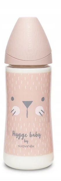 Wysokiej jakości poliamidowa butelka dla dziecka, z okrągłym, silikonowym smoczkiem do gęstych pokarmów, o pojemności 360 ml.