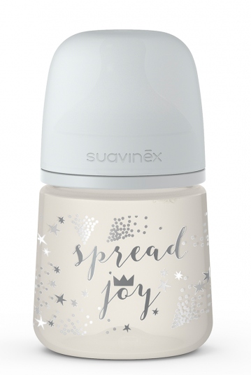 Wysokiej jakości butelka z kolekcji Spread Joy o pojemności 150 ml dostępna z innowacyjnym fizjologicznym smoczkiem SX Pro o wolnym przepływie, który został zaprojektowany z myślą o specyfice jamy ustnej noworodka, którego dolna i górna szczęka dopiero się rozwija. Rewolucyjny kształt smoczka SX Pro pozwala językowi pozostać w pozycji, którą dziecko naturalnie i fizjologicznie utrzymuje podczas karmienia piersią. Dzięki specjalnemu zaworowi sprzyja równowadze ciśnień między zewnętrzną a wewnętrzną stroną butelki, redukując w ten sposób możliwość występowania kolek u dzieci.