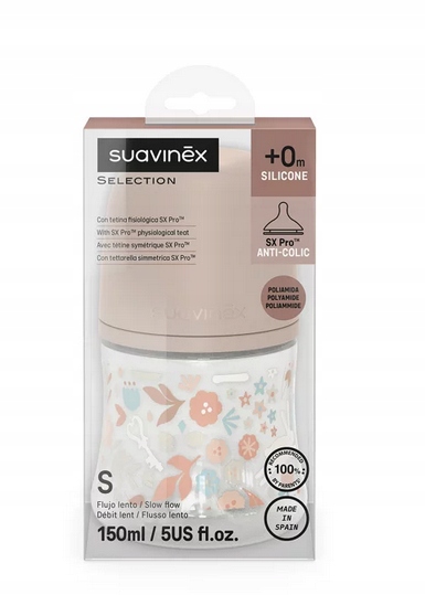 Butelka z poliamidu z kolekcji Wonderland łączy wyjątkową lekkość i transparentność z trwałością. Jest wykonana z przezroczystego plastiku, co sprawia, że jest niezwykle lekka i idealna do codziennego użytku. Butelka o pojemności 150 ml wyposażona jest w smoczek SX Pro o wolnym przepływie przepuszczającym niewielką ilość cieczy i przeznaczonym do karmienia mlekiem w pierwszych dniach życia i podawania wody.