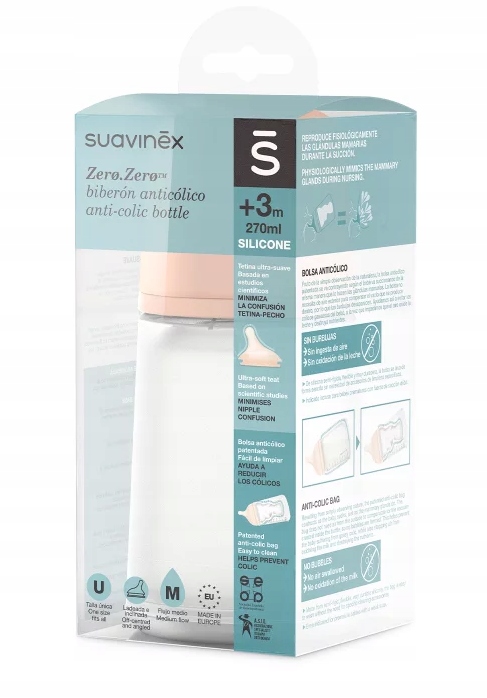 SUAVINEX BUTELKA ZERO ZERO ŚREDNI PRZEPŁYWIE 270ML