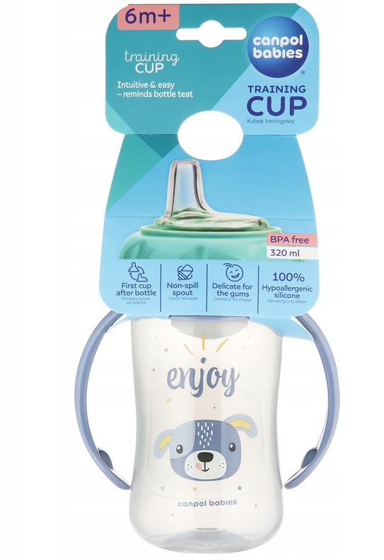 Ustnik jest wykonany z bardzo miękkiego silikonu i nie podrażnia wrażliwych dziąseł maluszka. Kubek jest lekki o profilowanej budowie. Wygodne uchwyty są odpowiednie dla małych rączek dziecka, a po ich zdjęciu kubek zmieni się w wygodny bidon dla straszaka. Canpol kubek treningowy 320 ml Cute Animals jest transparentny, więc doskonale widoczna jest jego zawartość. Niewielka ilość elementów sprawia, że jest łatwy do składania i mycia – kubek nie ma zbędnych zakamarków, dzięki czemu można szybko umyć wszystkie części, a ustnik wyparzyć.