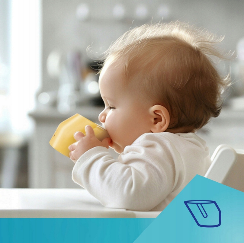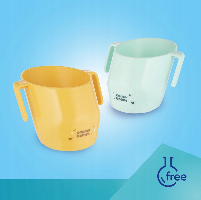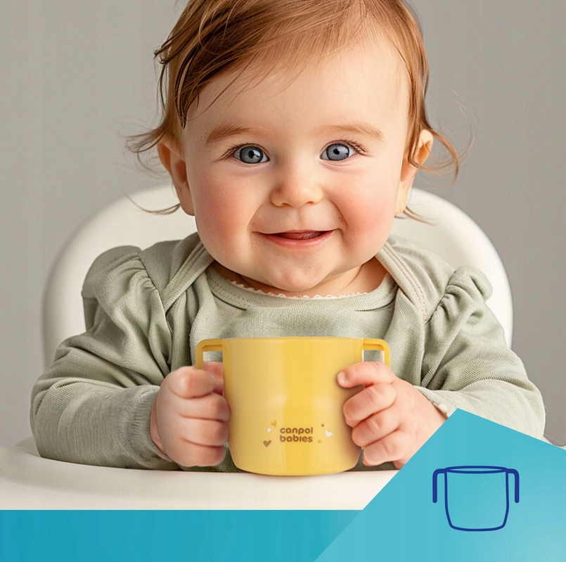 Ścięta krawędź ułatwia picie, eliminując konieczność odchylania głowy, co zmniejsza ryzyko zakrztuszenia. Wykonany z nietłukącego się plastiku (PP), nie zawiera BPA ani szkodliwych substancji. Jest odporny na uszkodzenia, a dzięki wygodnym uchwytom dzieci łatwiej go trzymają.