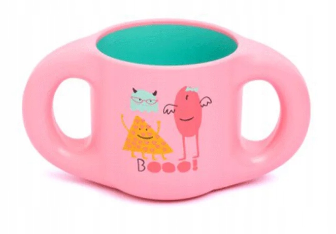 Kubek tradycyjny z dużymi uszkami do trzymania z serii Suavinex Booo. Przeznaczony dla dziecka w wieku 6 miesięcy i starszych.