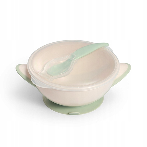 Miseczka z przyssawką i łyżeczką to produkt przydatny na spacerze lub w podróży. Miękka przykrywka szczelnie chroniąca pokarm została wyposażona w system ułatwiający przechowywanie, dzięki któremu łyżeczka nie zabrudzi się, ani nie zgubi.