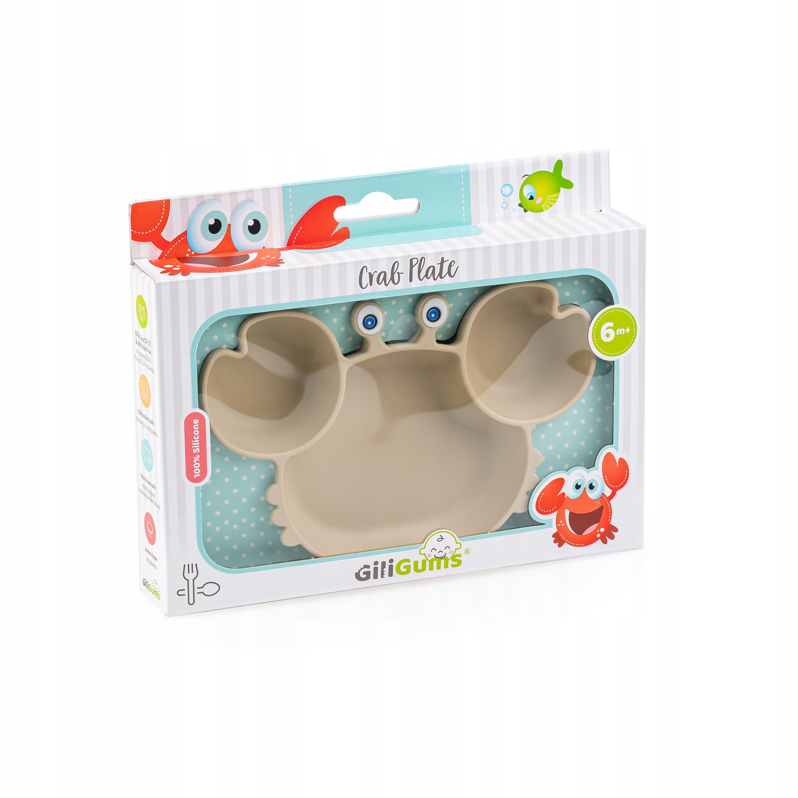 GiliGums TALERZ TRÓJDZIELNY Z PRZYSSAWKĄ KRAB BEŻOWY SILIKON 6M+