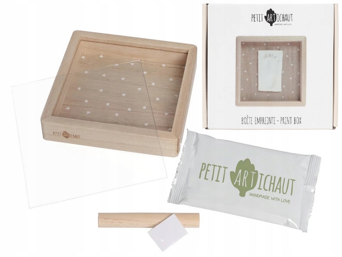 Ramka na odcisk umożliwia stworzenie niezapomnianej pamiątki z pierwszych chwil życia Twojego maluszka. Ta elegancka, kwadratowa ramka z uroczym wzorem serduszek będzie doskonałą ozdobą w każdym domu. Można ją postawić na półce lub powiesić na ścianie, tworząc subtelną dekorację, która przyciągnie uwagę i wzbudzi ciepłe wspomnienia. W zestawie znajduje się drewniana ramka z ochronną szybą, hipoalergiczna glina, wałek oraz instrukcja, dzięki której w prosty sposób stworzysz wyjątkową pamiątkę.