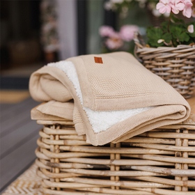 Dwustronne wykonanie, z miękkiej dzianiny i z puszystej sherpy, doskonale chroni przed wiatrem i zimnem. Gruby kocyk z sherpą dla niemowlaka stworzyliśmy z myślą o jesiennych chłodach i zimowych mrozach.