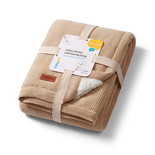 BABYONO KOCYK KOC BAWEŁNIANY Z OCIEPLENIEM MIĘKKI GRUBY 75X100CM BEŻOWY
