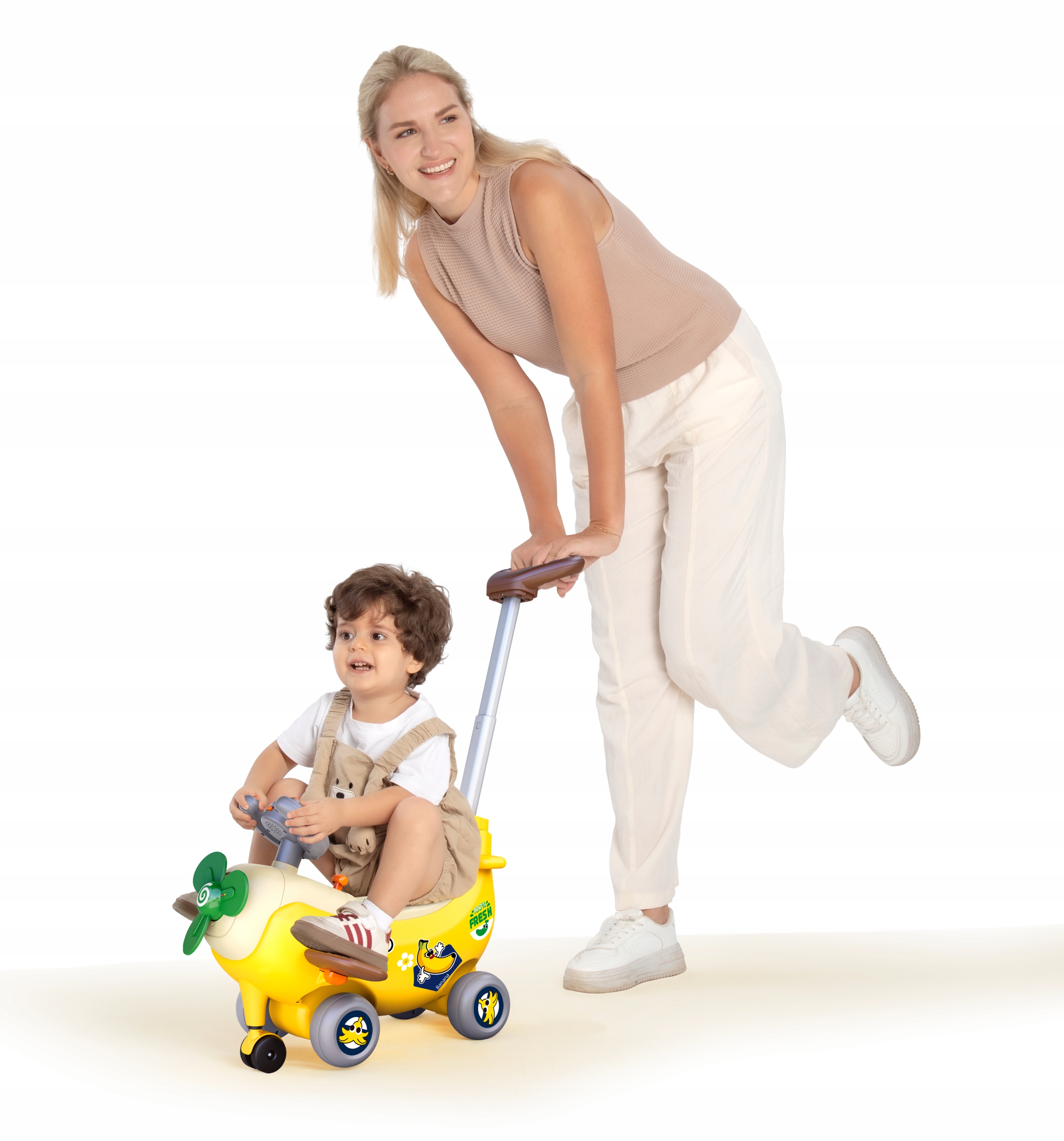 – jeździkiem można bawić się na 4 sposoby: zabawa kierownicą, prowadzenie rączką, „przejażdżka”, odpychanie nóżkami;