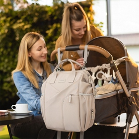 Praktyczny plecak i organizer dla każdej mamy– dzięki swojej pojemności i funkcjonalnym przegrodom pomieści pieluszki, butelki, książki czy tablet.