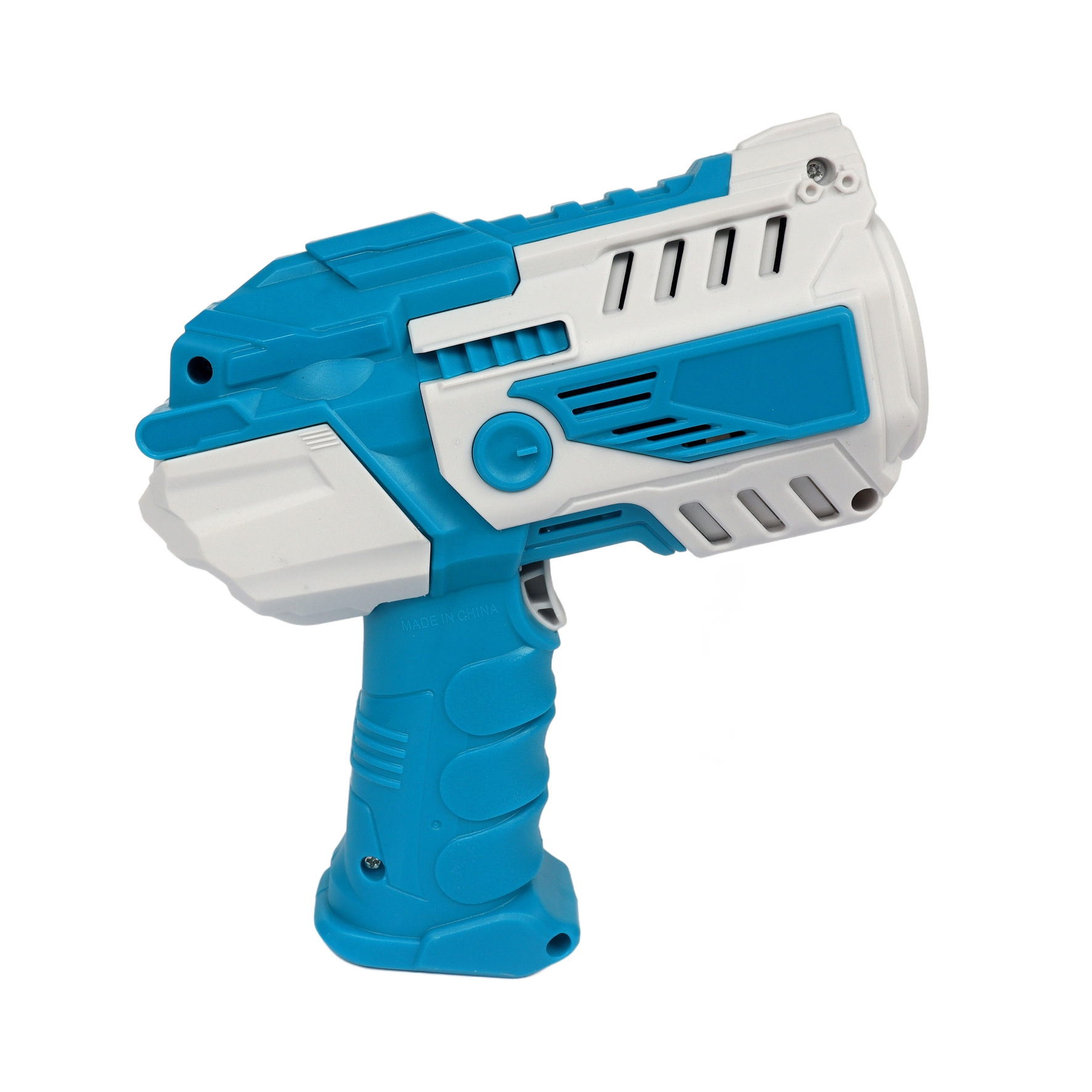 Aby rozpocząć zabawę, umieść w wyrzutni dołączoną do zestawu buteleczkę z płynem, zasil zabawkę bateriami i naciśnij na spust, a z lufy wystrzeli nieprzerwany strumień baniek! Z wyrzutni należy korzystać na świeżym powietrzu.