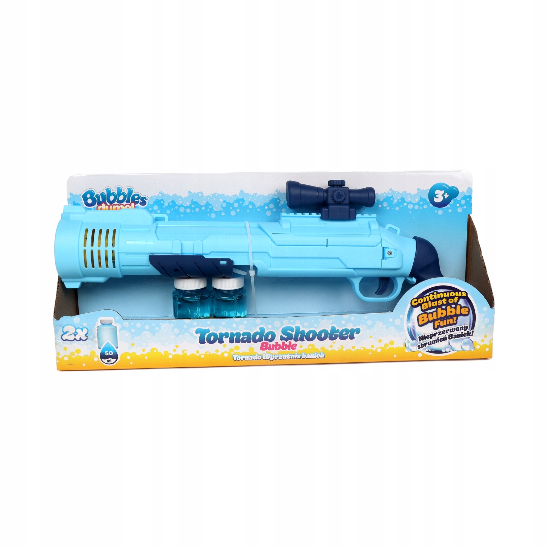 Z wyrzutnią Tornado, wyposażoną w płyn, wyczarujesz nieprzerwany strumień baniek. Aby przystąpić do zabawy, należy zasilić zabawkę bateriami, wkręcić pod lufę buteleczkę, zgodnie z obrazkową instrukcją z opakowania i pociągnąć za spust, aby z lufy wyrzutni wystrzeliły bańki! Do zestawu dołączone są aż dwie buteleczki płynu o pojemności 50 ml, a jeśli i ten zapas się wyczerpie, w ofercie Dumel Bubbles znajdziesz płyny o różnej pojemności, którymi można uzupełnić buteleczki. Z produktu należy korzystać na świeżym powietrzu.