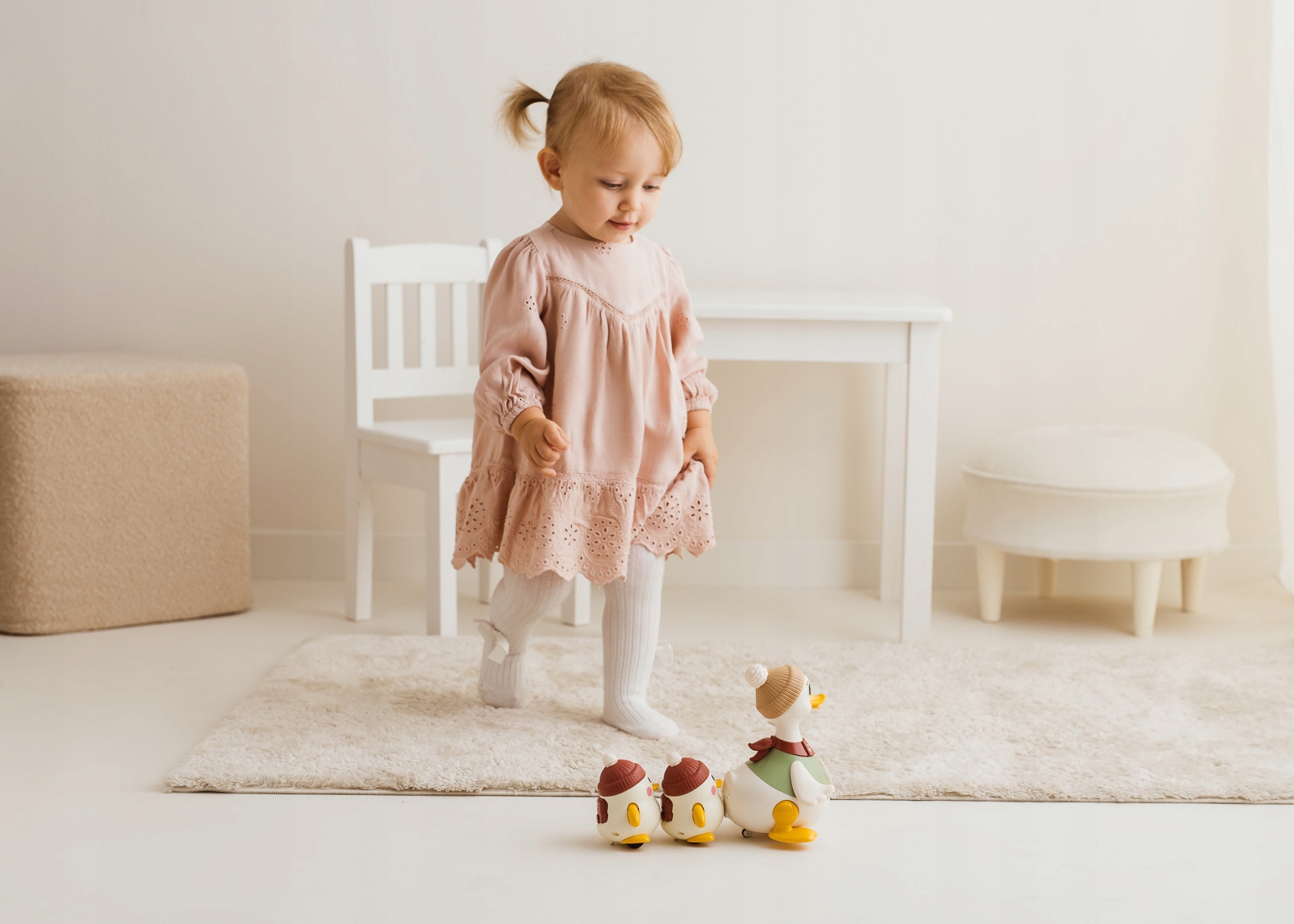– zestaw składa się z trzech zabawek: mamy – kaczki i dwóch małych kaczuszek;