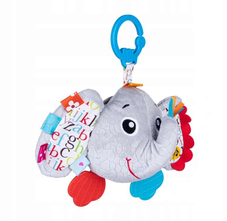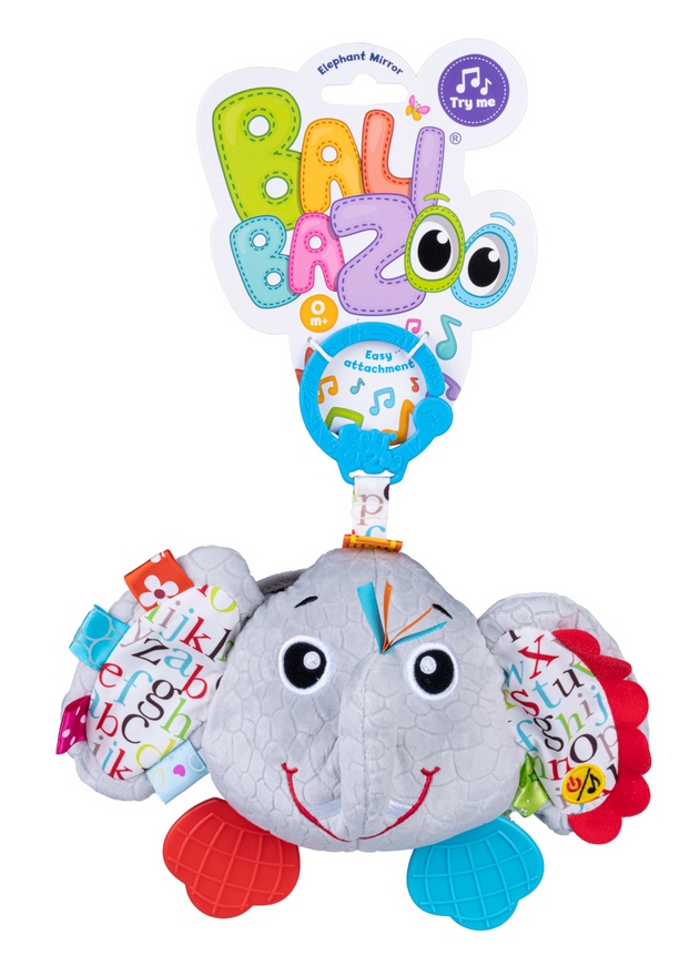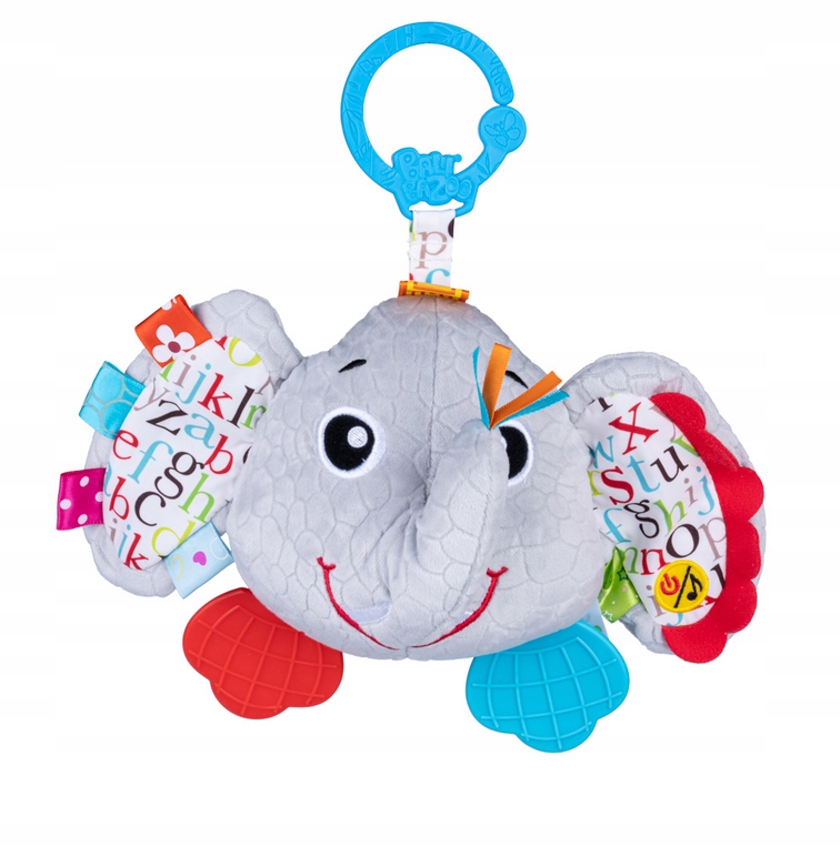 To muzyczny słonik, który zapewni dzieciom wspaniałą zabawę, a gdy przyjdzie pora na drzemkę, ukołysze je do sny pięknymi melodiami. Muzykę uruchamia się poprzez naciśnięcie guziczka ukrytego w uchu słonia. Do wyboru mamy dwie melodie, które przełączamy klikając ponownie na przycisk. Gdy dźwięk nie będzie potrzebny, możemy go wyłączyć, oszczędzając przy tym baterie. W tym celu wystarczy długo przytrzymać guziczek. Zabawka wykonana została ze zróżnicowanym materiałów, które stymulują zmysły wzroku i dotyku malucha. Słoniową głowę zdobią kolorowe metki oraz gryzaczki, a przymocowane do niej duże, bezpieczne lusterko, posłuży do samopoznania dziecka!