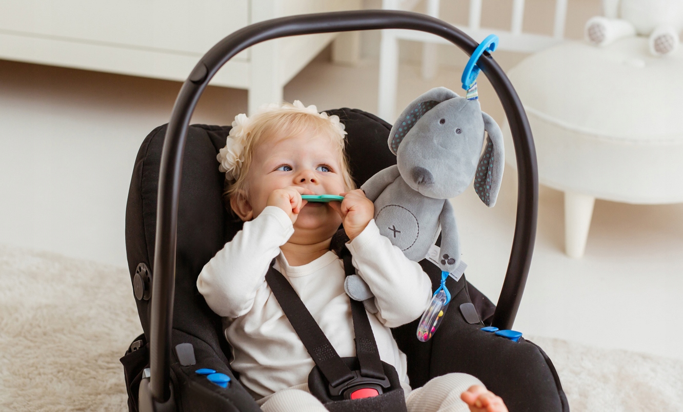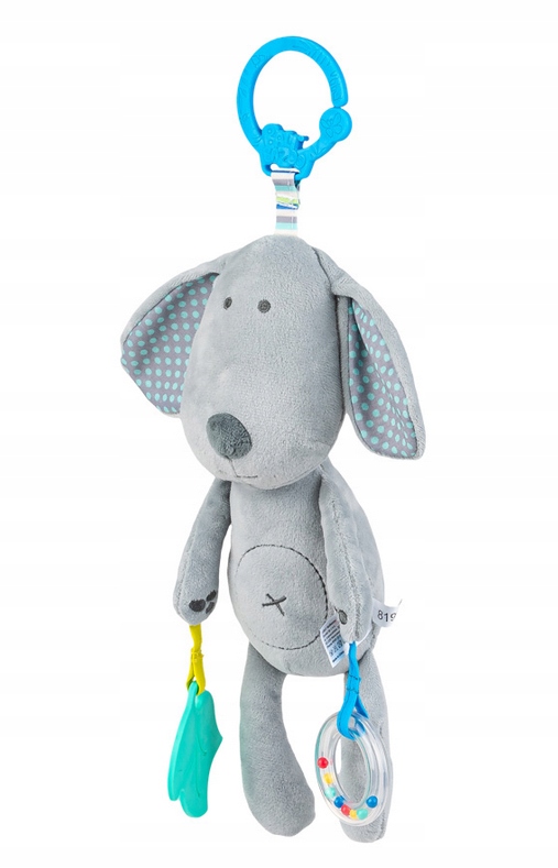 Ta urocza zawieszka wyposażona została w gryzaczek, który przyniesie ulgę obolałym dziąsłom ząbkującego bobasa. Zabawkę zdobi także grzechocząca obręcz z kolorowymi kuleczkami. Praktyczny uchwyt do mocowania zabawki, pozwoli przymocować ją w dowolnym miejscu, aby wszędzie mogła towarzyszyć maluchowi.