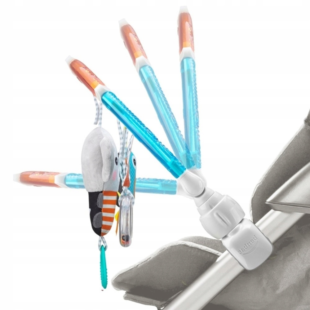 - Uniwersalne zaciski – montaż do wózka, fotelika, bujaczka