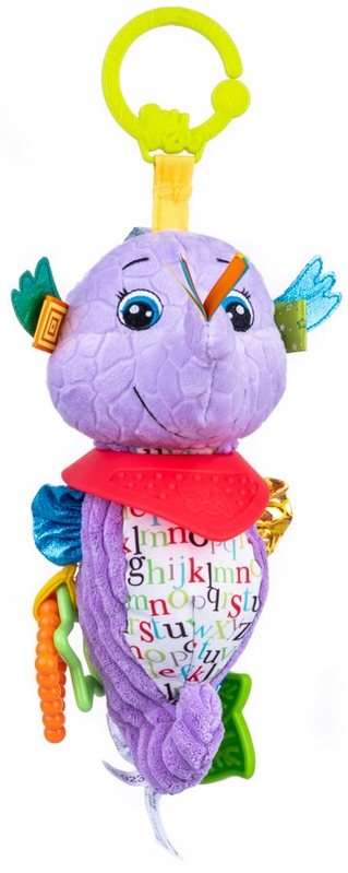 Konika morskiego zdobią metki o zróżnicowanej fakturze i kolorowe gryzaczki. Na jego szyi znajduje się gumowa bandana z wypustkami, która także świetnie sprawdzi się w roli gryzaka, przynosząc ulgę obolałym dziąsełkom ząbkującego maluszka. Praktyczna klamra pozwoli przypiąć Konika w wybranym miejscu.