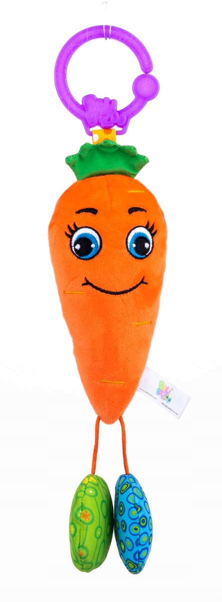 Zabawna Marcheweczka wesoło dzwoni zachęcając maluchy do zabawy. Zawieszka wykonana jest z materiałów o zróżnicowanej fakturze, przez co stymuluje zmysł dotyku dziecka. Zabawka posiada piszczałkę oraz szeleszczące elementy. Praktyczny uchwyt umożliwi przymocowanie jej w dowolnym miejscu.