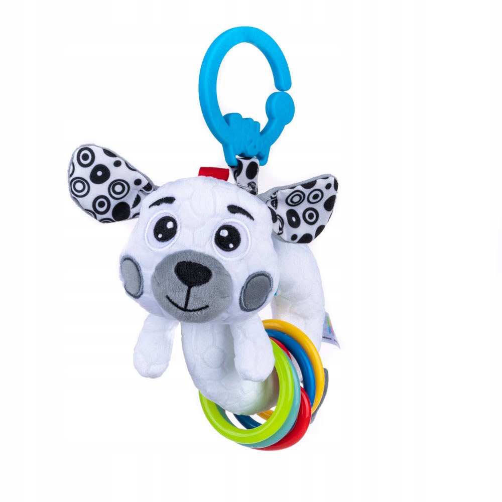 Ten uroczy, kontrastowy szczeniaczek zainteresuje każdego maluszka. Zdobią go metki o zróżnicowanej fakturze i kolorowe kółeczka, które wesoło grzechoczą przy potrząsaniu. Dzięki praktycznej klamrze bez trudu przymocujesz go w wybranym miejscu, aby zawsze mógł towarzyszyć Twojemu Bobaskowi.