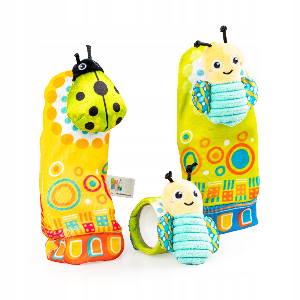 Z zestawem uroczych grzechotek, każdemu ruchowi malucha towarzyszyć będzie wesoły odgłos. Zarówno skarpetki, jak i bransoletka ozdobione są grzechoczącym owadem, a skrzydełka motylków zabawnie szeleszczą, podczas dotykania. Zróżnicowane faktury materiałów, z których uszyty został zestaw, wspierają rozwój zdolności poznawczych najmłodszych, dostarczając im rozmaitych bodźców dotykowych.
