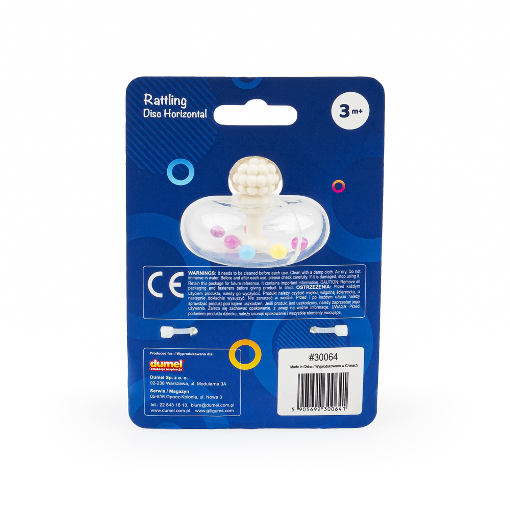 Wszystko za sprawą kuleczki z wypustkami, znajdującej się na górze grzechotki. Zabawka wyposażona jest w miękki, silikonowy uchwyt, dostosowany do małych rączek, dzięki czemu zabawa z grzechotką będzie nie tylko wesoła, ale także komfortowa.