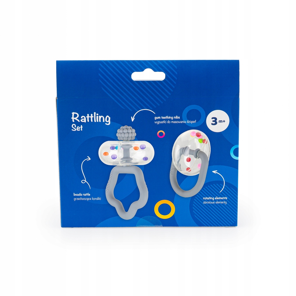 GiliGums ZESTAW GRZECHOCZĄCY SZARY 2 SZTUKI GRZECHOTEK MIĘKKI UCHWYT
